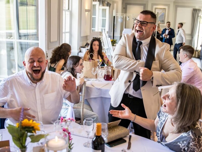 His performances seamlessly combine sleight of hand, captivating magic, and exceptional hospitality with humour. This unique blend ensures that your wedding will not only be entertaining but also truly memorable for all your guests.